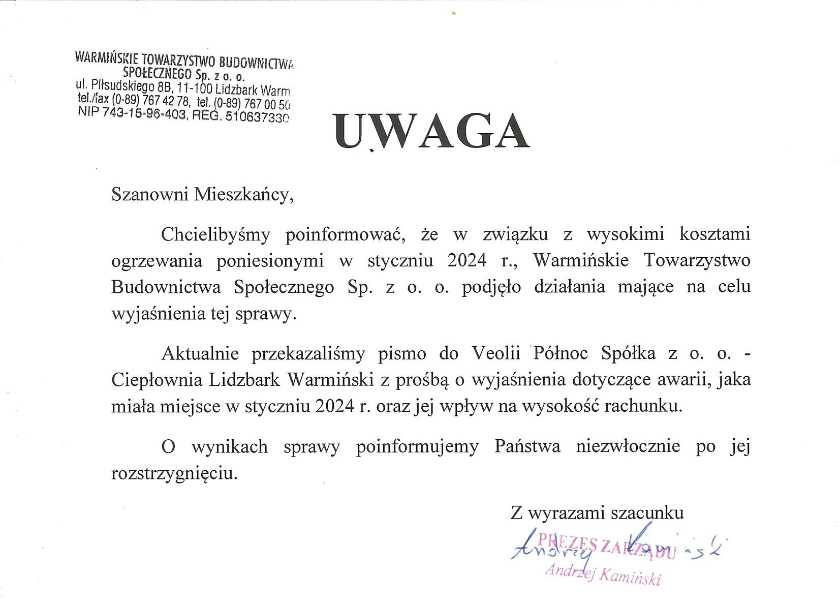 Warmińskie Towarzystwo Budownictwa Społecznego Spółka z o.o. ul. Piłsudskiego 8B, 11-100 Lidzbark Warmiński NIP: 743-15-96-403, REGON 51063733000000, KRS 0000159136