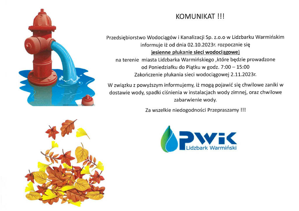 KOMUNIKAT PWIK WS. PŁUKANIA SIECI WODOCIĄGOWEJ